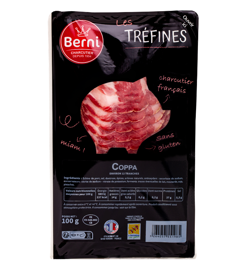 Notre Coppa, une charcuterie de choix traditionnellement salée au sel sec et délicatement épicée. Élaborée à partir de viande de porc de qualité supérieure, cette spécialité italienne offre une texture fondante et des saveurs riches qui raviront vos papilles. Idéale pour composer des buffets froids, la coppa se marie également à merveille avec vos plats de pâtes et vos tartes salées, apportant une touche d’authenticité à chaque bouchée. Appréciez le goût unique de notre coppa, parfaite pour toutes vos occasions gourmandes.